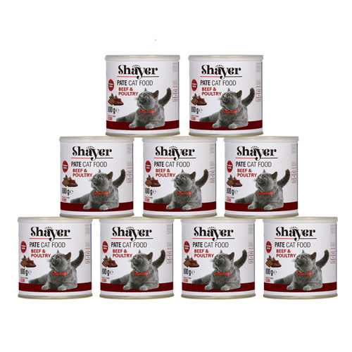 کنسرو گربه شایر مدل گوشت قرمز وگوشت طیور وزن 800 گرم بسته 8 عددی